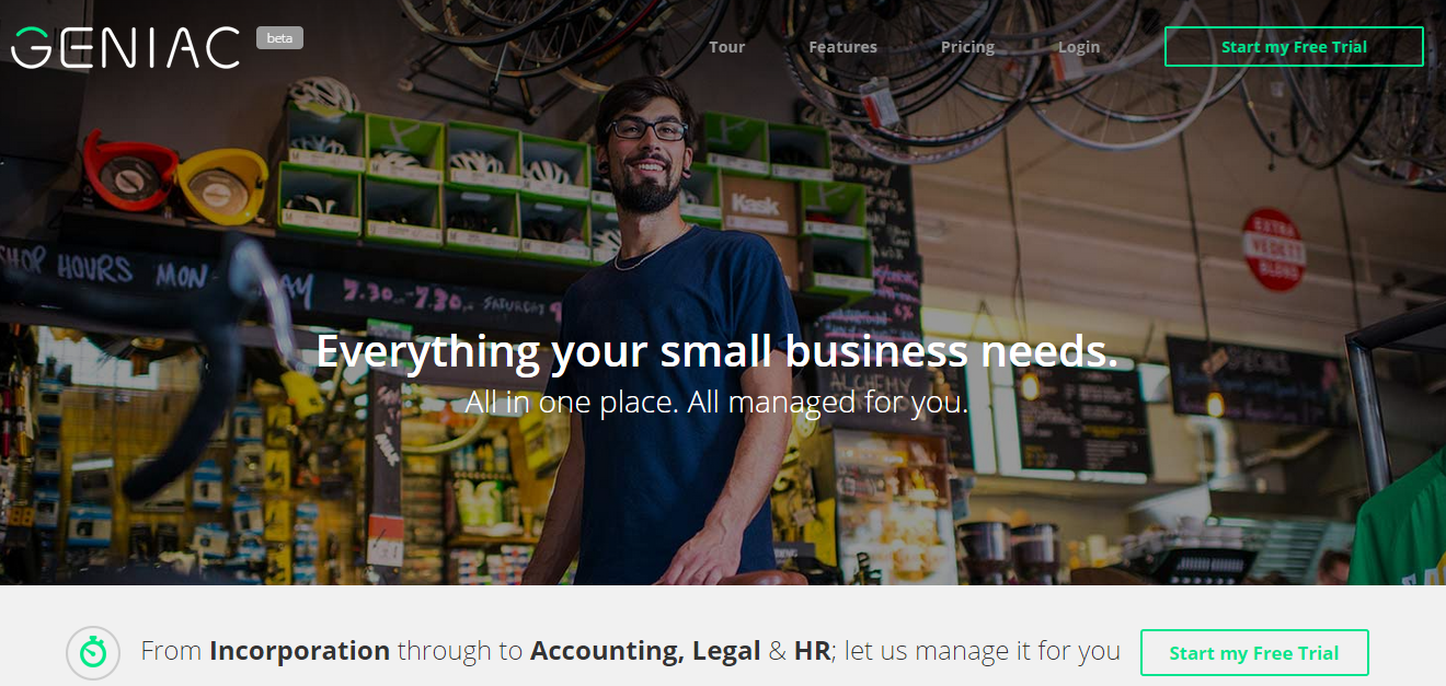 Geniac is a single-service platform created with the ambition to help small businesses and startups to have better visibility and control over their companies. The platform provides the user with a dedicated Geniac manager who manages most of the company processes, delivers information and advice from Accounting through Legal & HR to Insurance. By using Geniac, startup owners will have more time to concentrate on growth and still be able to track everything that is happening in the company, directly from the Geniac platform.