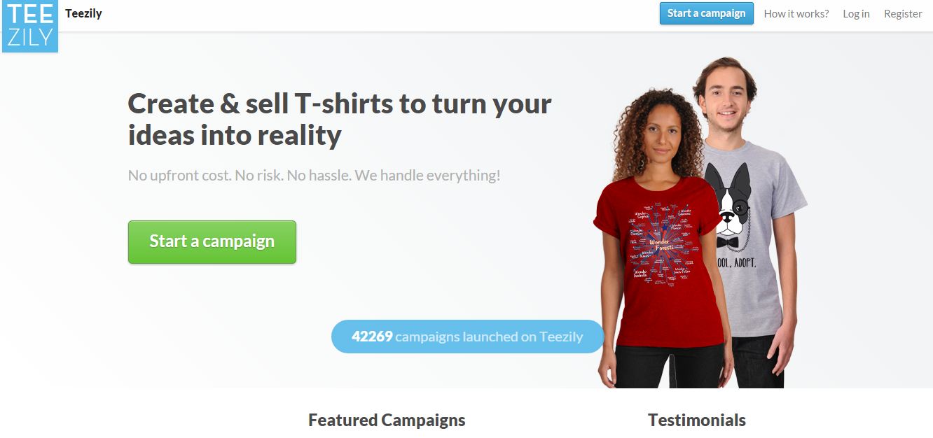 Teezily is a crowdfunding platform that allows the users to create their own campaigns and help them sell their custom T-shirts online. The users are able to start their campaigns in just three easy steps: Create your custom designed product – Share it on social media – Cash your profit. After its launch just a year ago, in January 2014, Teezily is already available in seven languages and has been growing rapidly.