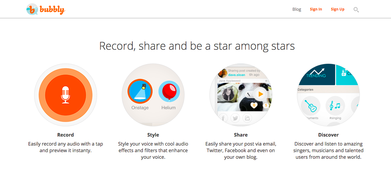 Bubbly is a smartphone app, which allows its users to create and share with other users their own voice blogs. This startup from Singapore is meant to be”the Twitter and Instagram for your voice”.