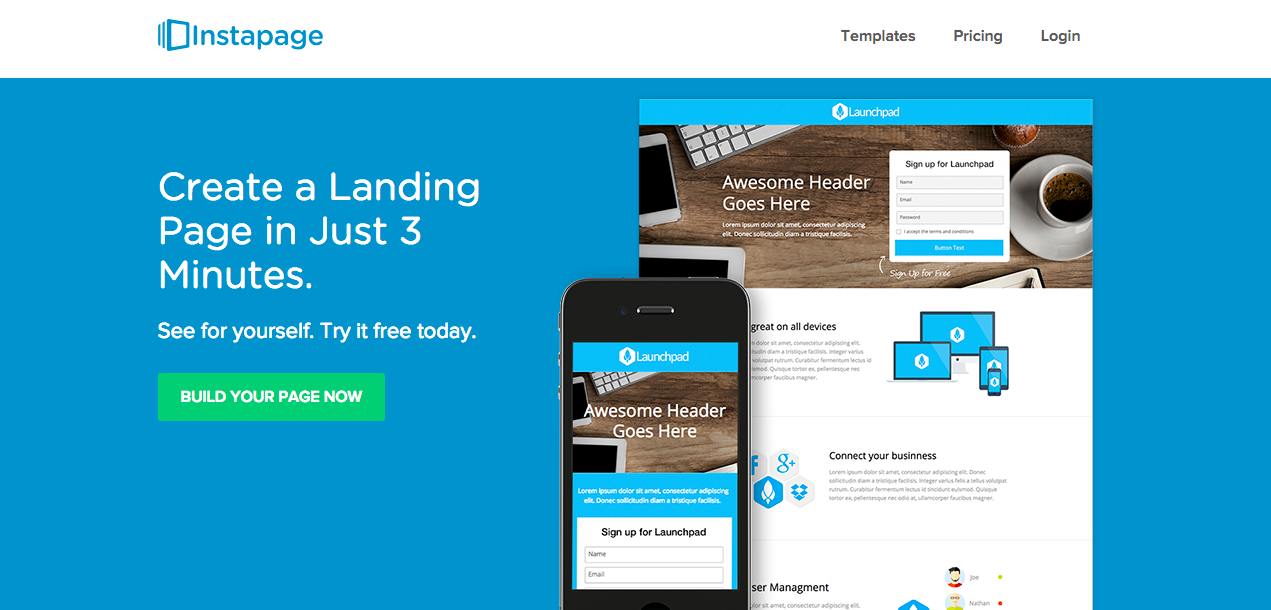 If you are looking for easy to use landing page platform, which offers great variety of beautiful and professional landing page templates, you should check out Instapage. They offer 80+ mobile responsive landing page templates to try, to find the one that fits you the most and customize it according to your needs.