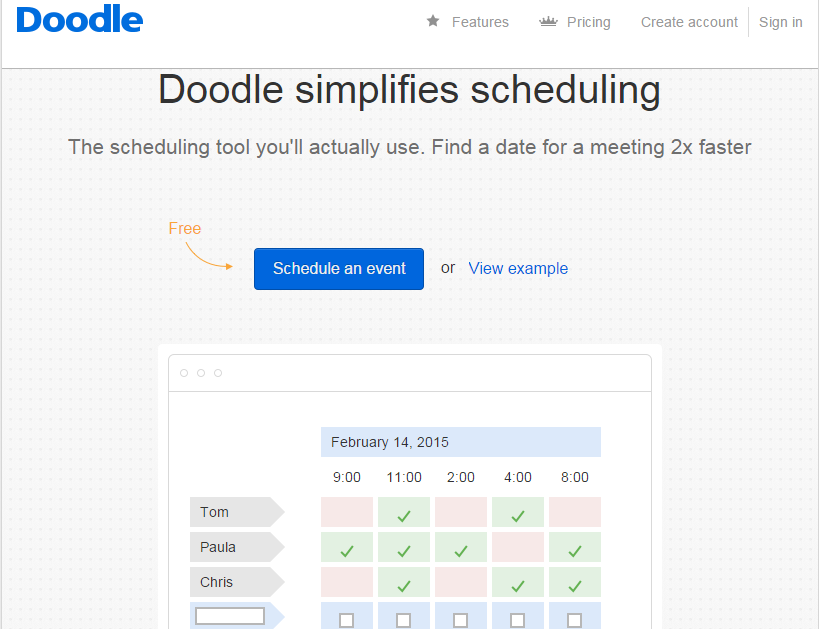 Successful crowdfunding campaigns are not easy to create and it is very likely a big part of your team to be involved in the process. This is why you can use Doodle, which is great online meeting scheduling tool, in order to create more efficient team management approach. Doodle is an online tool that simplifies scheduling and helps its users to find the right dates for their meetings two times faster. Doodle cooperates with your calendar and automatically synchronizes your appointments to it.