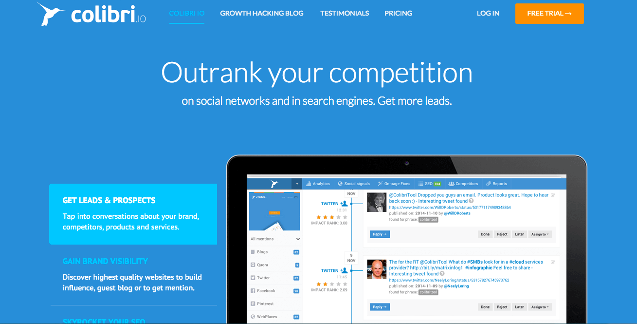 If you want to outrank your competition on social networks and in search engines and to get more leads by getting into the right and most relevant conversations online, which I believe that you do, Colibri.io is the right place to visit. By using this tool you are able to monitor what people say about your brand, reveal what they say about your competition and you can easily monitor your personal reputation online.