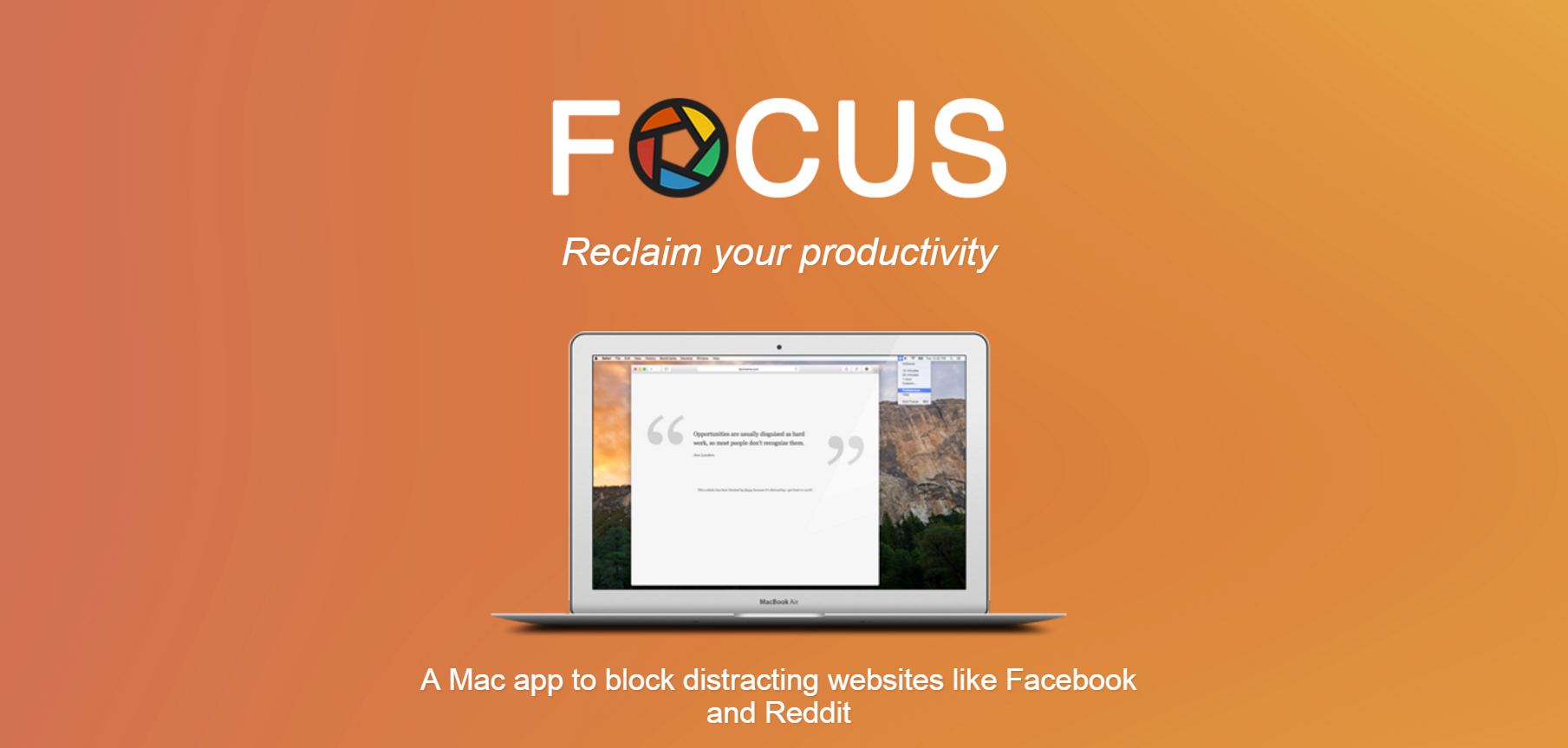 Focus is a Mac app that allows you to block distraction websites like Facebook and Reddit.